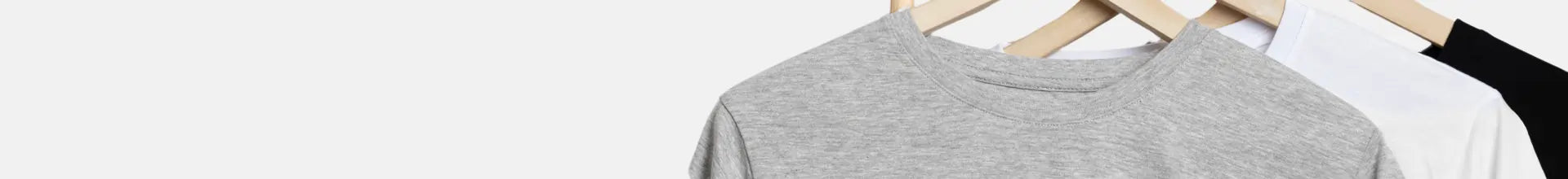 Gray t-shirt on a wooden hanger with a white shirt in the background